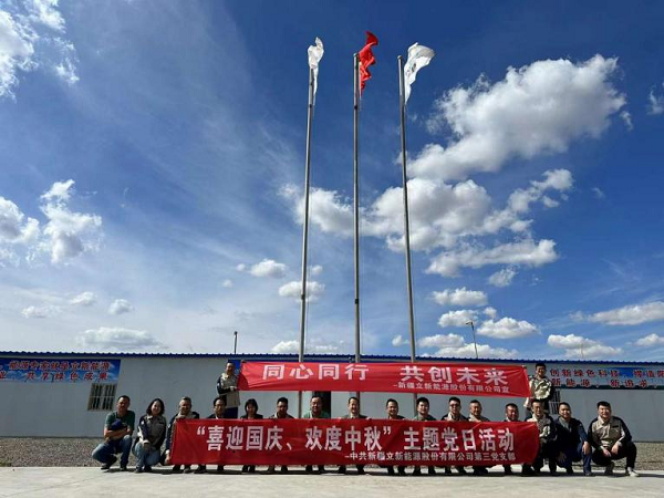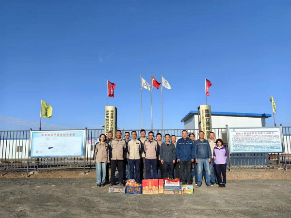 立新能源公司第三黨支部與工程管理部共同組織開展“喜迎國慶、歡度中秋”主題黨日暨走訪慰問活動。全體黨員親切慰問了奮戰(zhàn)在奇臺30萬千瓦(風(fēng)光同場)一體化項目基建施工現(xiàn)場的干部員工,為他們送去中秋佳節(jié)祝福。