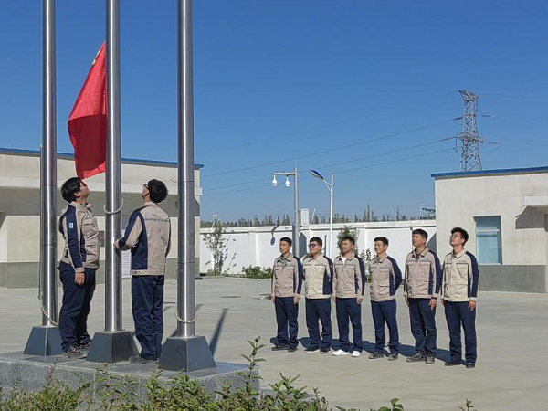 立新能源公司第二黨支部集控中心開展慶祝中華人民共和國成立74周年“升國旗·唱國歌”暨主題黨日活動。