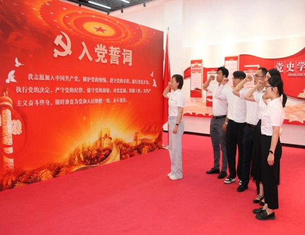 全體黨員通過參觀黨建活動室,重溫了波瀾壯闊的革命歷史,聆聽了勛章背后的故事,深入學習感悟革命先烈堅定的理想信念、忠貞的革命意志、奮斗的革命歷程集中觀看《黨的百年奮斗歷程1921-2021》宣傳電教片,共同感受黨的百年奮斗歷程。面向黨旗,組織預備黨員進行入黨誓詞,進一步堅定預備黨員的入黨初心和為共產(chǎn)主義奮斗終生的決心。