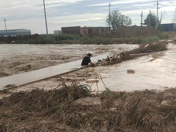 汛情就是命令,農(nóng)場全體職工始終堅守在抗洪一線,昌吉農(nóng)場場長徐成祥,眼看水流越來越大,淤堵越來越多,嚴(yán)重威脅農(nóng)田渡槽安全,渡槽一旦垮塌,通過渡槽引水灌溉的8000余畝土地,今秋明春的供水就會被阻斷,關(guān)鍵時刻,徐成祥同志跳入深至胸口的洪水中,爭分奪秒地打撈、清理被洪水沖下來的雜物。在徐成祥同志的帶領(lǐng)下,昌吉農(nóng)場更多的同志跳入水中加入搶險隊伍,經(jīng)過近三個小時的努力,險情終于得到了控制,保障了蓄水池及機(jī)房的安全,避免了數(shù)十萬元的經(jīng)濟(jì)損失。