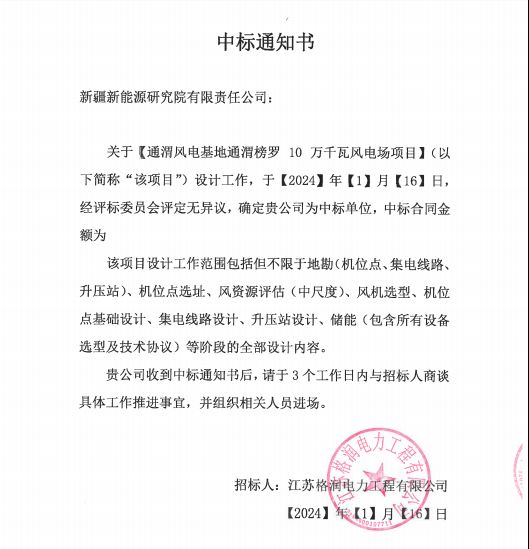 勇拓市場增效益,接連中標(biāo)獲新績。北京金達坂公司在市場開拓中始終秉持著高效、專業(yè)、創(chuàng)新的理念,在市場開拓中樹立良好的企業(yè)形象,打響企業(yè)品牌。首月,以新能源研究院名義,充分展示在勘察設(shè)計領(lǐng)域的專業(yè)水平和“能源人”嚴(yán)謹(jǐn)細致、精益求精的品格,成功中標(biāo)兩個勘察設(shè)計項目:陽曲縣泥屯鎮(zhèn)100兆瓦風(fēng)電項目設(shè)計(含勘察)服務(wù)及通渭風(fēng)電基地通渭榜羅10萬千瓦風(fēng)電場項目勘察設(shè)計。