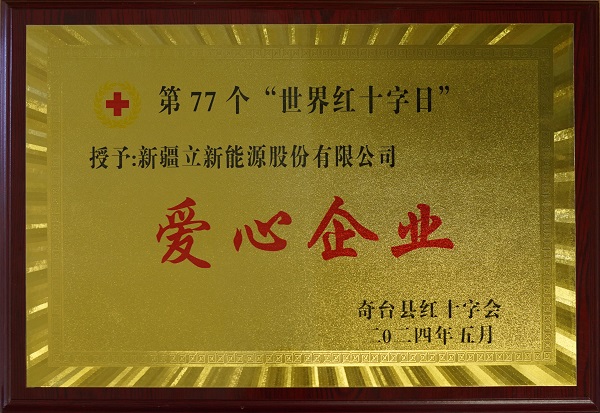 與愛同行,向善而為。在第77個(gè)“世界紅十字日”來臨之際,立新能源公司被奇臺(tái)縣紅十字會(huì)授予“愛心企業(yè)”榮譽(yù)稱號(hào)。