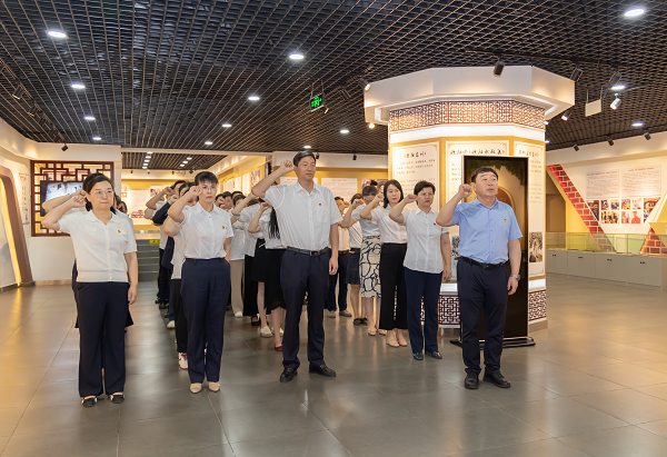 在參觀前集團(tuán)公司黨委副書記、董事吳華帶領(lǐng)現(xiàn)場全體黨員重溫了入黨誓詞,大家高舉右手莊嚴(yán)宣誓,用錚錚誓言表達(dá)不忘初心、牢記使命的信念決心,始終要把對黨絕對忠誠轉(zhuǎn)化為奮勇前行的強(qiáng)大動力。