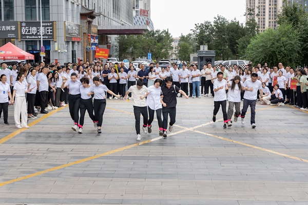 目標一致,三人一組,綁腿前行。在“齊心協(xié)力健步行”環(huán)節(jié)中,他們步伐一致,攜手共進,每一步都充滿力量,每一步都揮灑著汗水與歡笑。