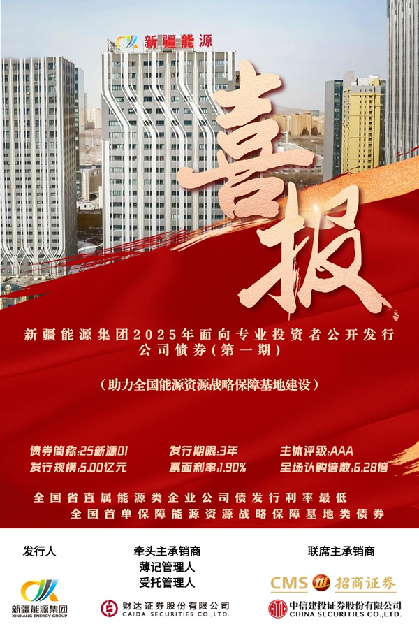本次債券發(fā)行是新疆能源集團(tuán)自獲取AAA主體評級(jí)后首次亮相資本市場,也是全國首單保障能源資源戰(zhàn)略保障基地類債券,創(chuàng)全國省直屬能源類企業(yè)可比債券發(fā)行利率歷史最低。