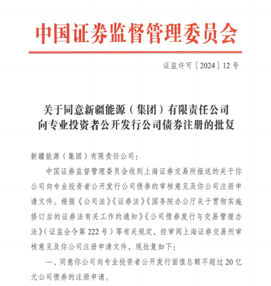 新疆能源集團(tuán)首次申報(bào)20億元公募公司債獲證監(jiān)會(huì)批復(fù)
