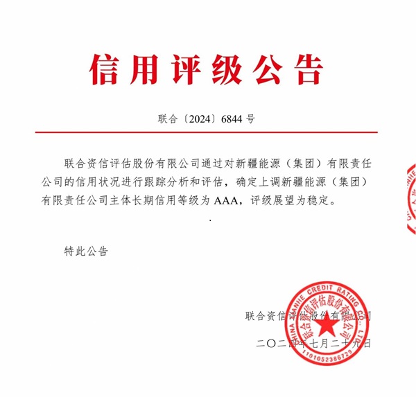 新疆能源集團(tuán)主體信用評級成功提升至AAA