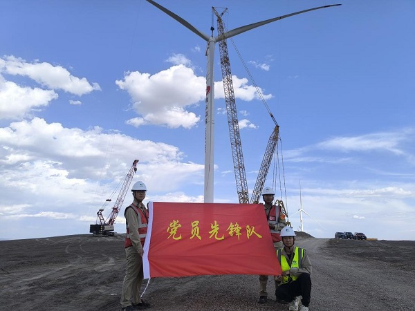新疆新能源研究院奇臺縣10萬千瓦風(fēng)電項目15臺風(fēng)機(jī)吊裝全部完成