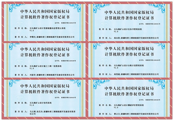 近日,哈密三塘湖公司六項(xiàng)軟件著作權(quán)取得國(guó)家級(jí)登記證書。