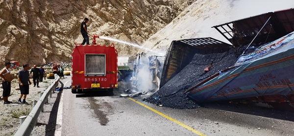 8月17日13時(shí)37分,和田礦業(yè)公司車(chē)隊(duì)接到喀什塔什邊防派出所求助電話,有運(yùn)煤車(chē)輛突發(fā)火情,在這危急時(shí)刻,和田礦業(yè)公司立即迅速組織人員、調(diào)派灑水車(chē)輛趕赴現(xiàn)場(chǎng)馳援救火,積極開(kāi)展滅火救...