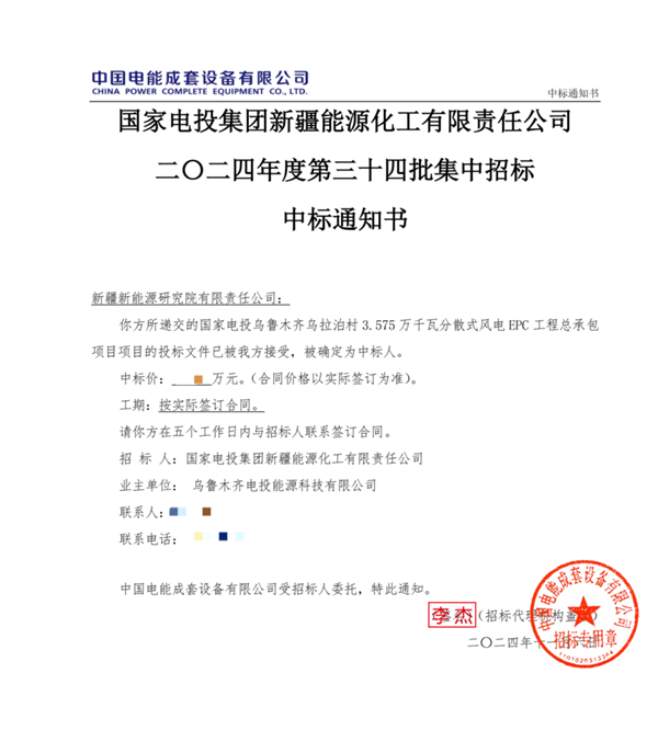 喜訊!新疆新能源研究院成功中標國家電投烏魯木齊烏拉泊村3.575萬千瓦分散式風電EPC總承包項目